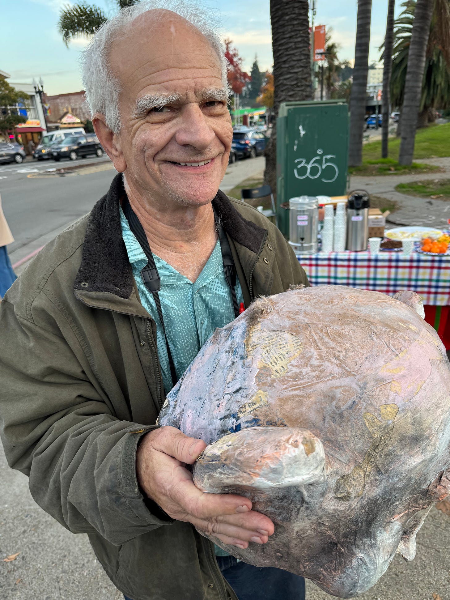 Zabrina gave the masks to Steve Brown for safe keeping. He wears them at the weekly demonstrations at the Grand Lake Vigil in Oakland and at other demonstrations in the Bay Area. The drive toward authoritarianism is international. So is the resistance.