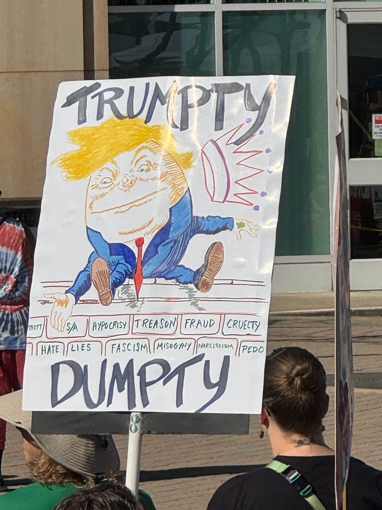 I imagine the readers of this Substack saw hundreds of posters at No Kings demonstrations, online, on cable and TV, or in pictures people sent you. Here are a few that you may not have seen.