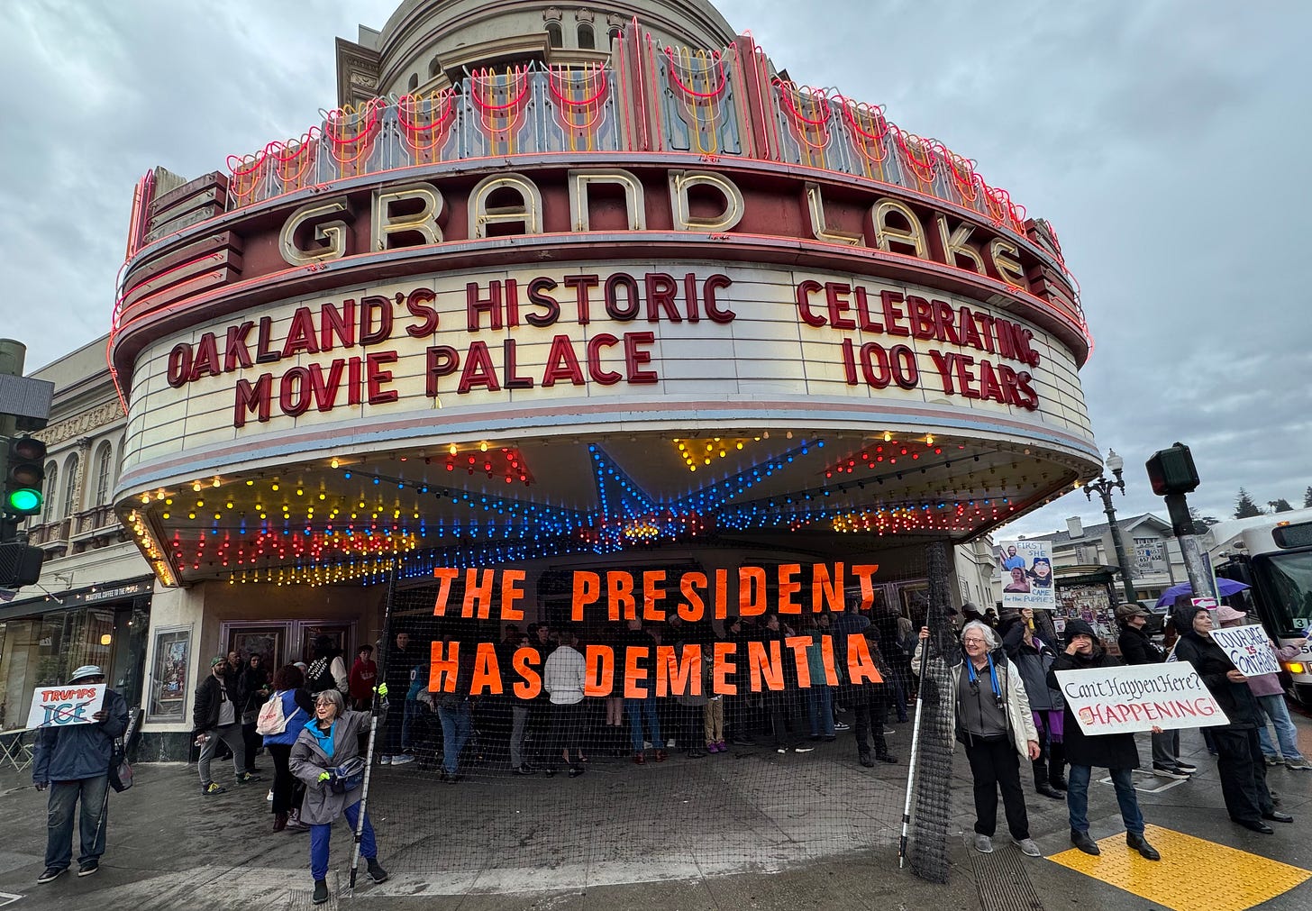 The Grand Lake Vigil in Oakland brings out new signs weekly.